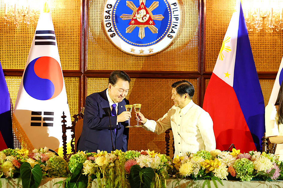 South Korean President Yoon Suk-yeol and Philippine President Ferdinand Marcos Jr yesterday agreed to boost defense cooperation as their nations elevated ties to a strategic partnership amid growing security challenges in the region.