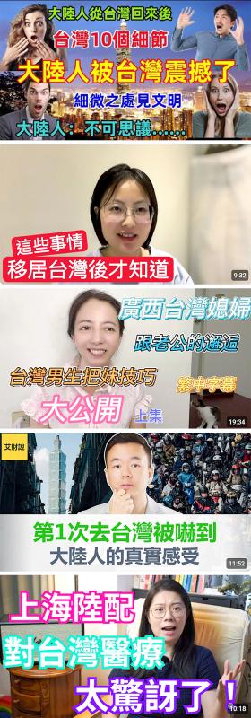 “There are about 80 Chinese spouses in Taiwan who are YouTubers, all of whom are young and highly educated and want to live more freely,” they said.