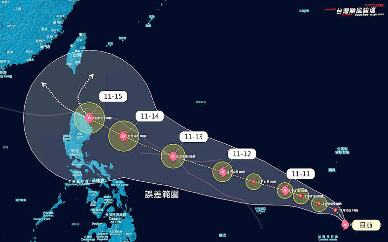 Once Usagi forms, it is expected to move northwest and first approach the east coast of the Luzon Island in the Philippines, CWA forecaster Chang Cheng-chuan (張承傳) said.
