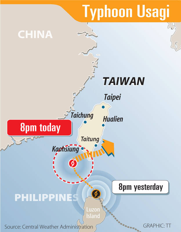 The Central Weather Administration (CWA) at 5:30pm yesterday issued a land warning for Typhoon Usagi as the storm approached Taiwan from the south after passing over the Philippines.