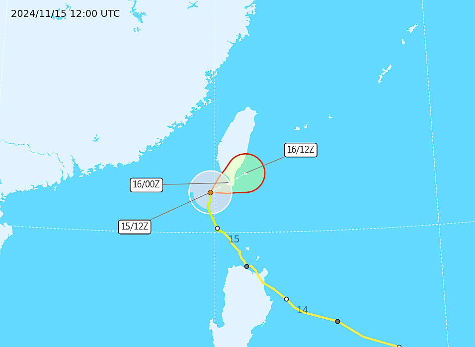 Extremely heavy rain might fall in mountainous areas of Taitung County, the Hengchun Peninsula and Pingtung County, while regional showers can be expected in Hualien County, low-lying areas in Pingtung County, and on Green and Orchid (Lanyu, 蘭嶼) islands, she said.