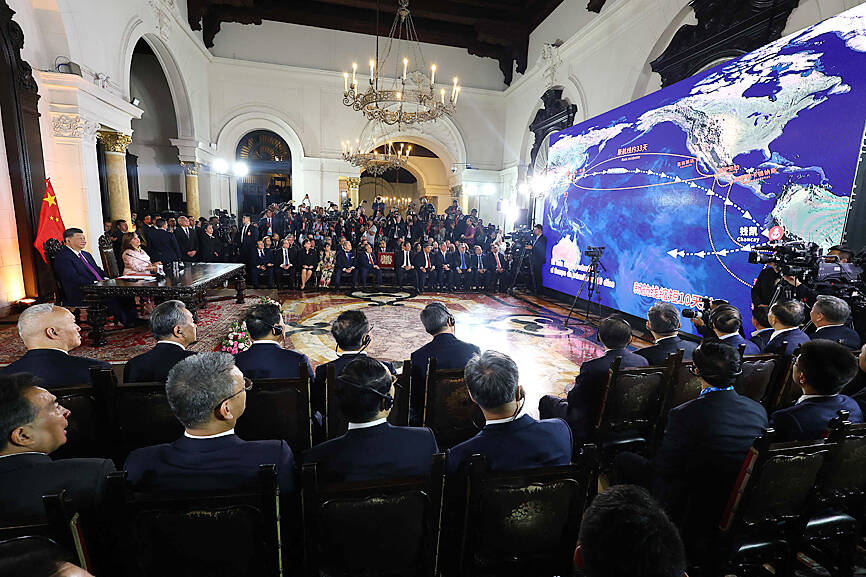 Chinese President Xi Jinping (習近平) and Boluarte participated in the opening of the port over video link, and signed a deal to widen a free-trade agreement.