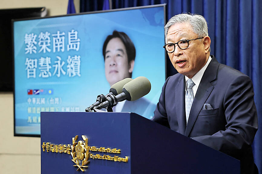 Lai is to travel from Saturday next week to Dec. 6 to the Marshall Islands, Tuvalu and Palau, Deputy Minister of Foreign Affairs Tien Chung-kwang (田中光) told a news conference at the Presidential Office in Taipei.