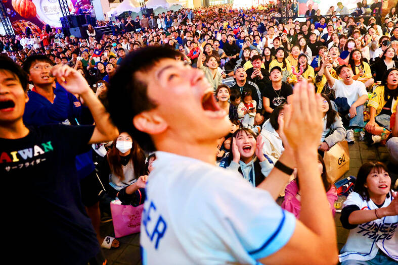 Back home, many in Taipei, New Taipei City, Taichung and Taoyuan cheered on Taiwan at viewings at city hall buildings, while sports arenas in Yilan, Hsinchu and Taitung counties and in Tainan also held viewing events. Taiwan’s Showtime Cinemas (秀泰影城) chain also sold tickets for those wanting to watch the match on the big screen.
