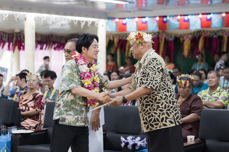 President William Lai (賴清德) arrived in the Pacific nation of Tuvalu today, where the two nations signed a joint communique on advancing their partnership.