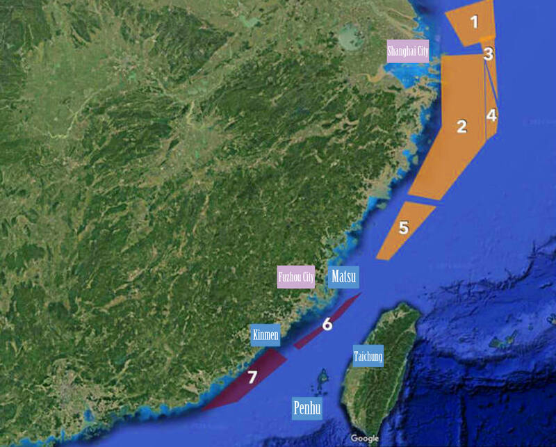 Another difference about the anticipated drills is the area covered by the seven reserved airspace zones, which range from Shanghai in the north and Shantou in the south, with two of the zones close to Kinmen and Lienchiang (Matsu) counties.