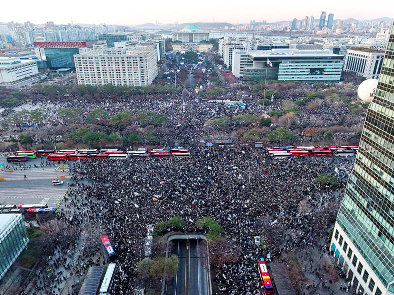 A Seoul police official said at least 200,000 people had massed outside the National Assembly in support of removing the president.