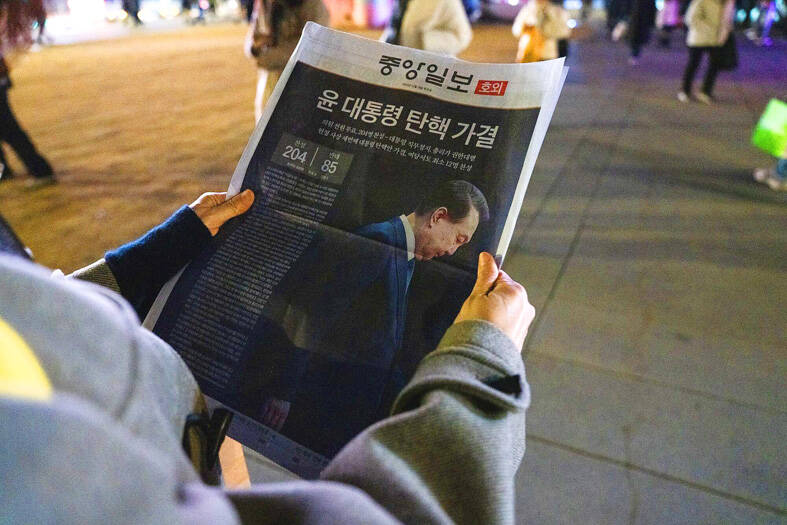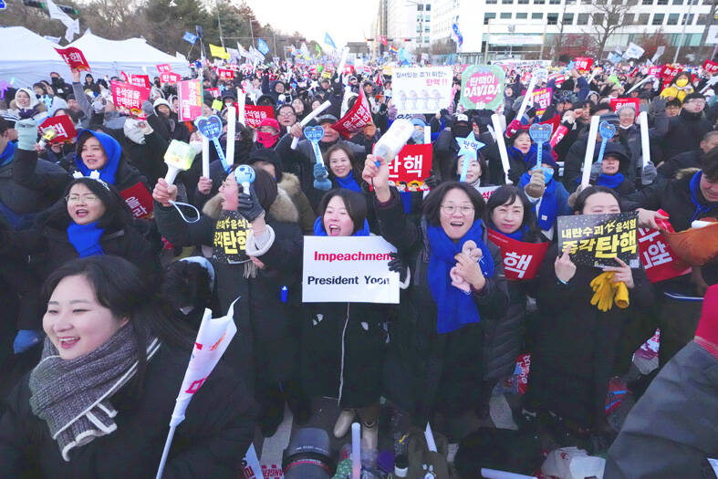 South Korean lawmakers yesterday impeached South Korean President Yoon Suk-yeol over his failed martial law bid, with the opposition declaring a “victory of the people.”