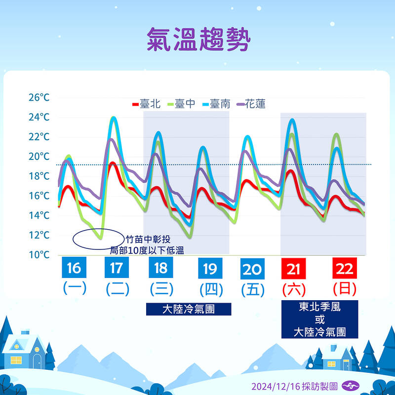 Independent meteorologist Daniel Wu (吳德榮) said the temperature would slowly rise today, but he predicted that it would still be cold in the northern parts of the nation.