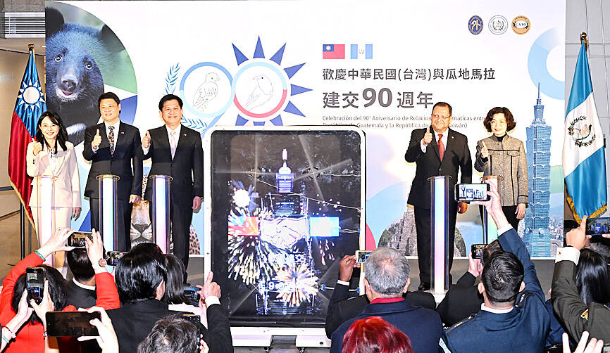 The ceremony was organized by the Central America Trade Office and the Guatemalan embassy in Taiwan, with the building lit up from 6pm to 10pm yesterday.
