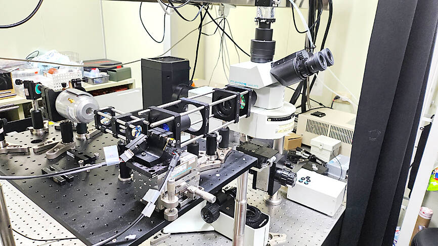 The device is thousands of times faster than traditional microscopes and uses artificial intelligence (AI) to increase the image resolution by 10 times, study coauthor and NTU physics professor Chu Shi-wei (朱士維) said.
