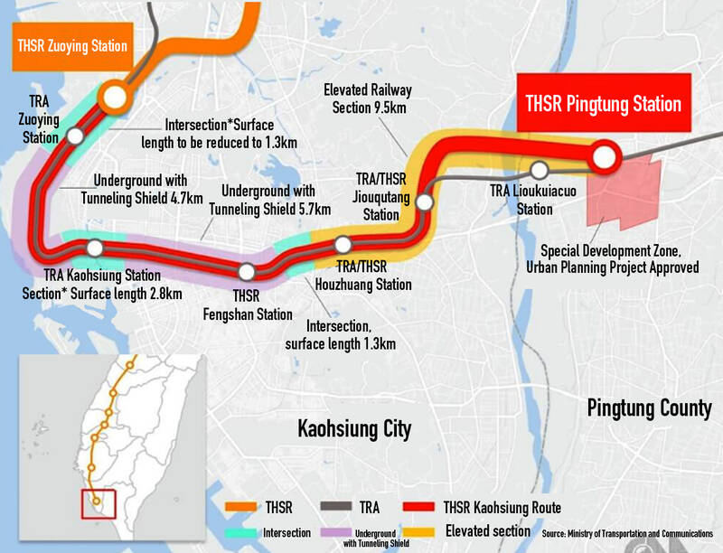 The project would help Kaohsiung and Pingtung governments plan for local infrastructure around the route and help implement the Executive Yuan’s plans to create a new technology center in Taiwan’s south, he said.