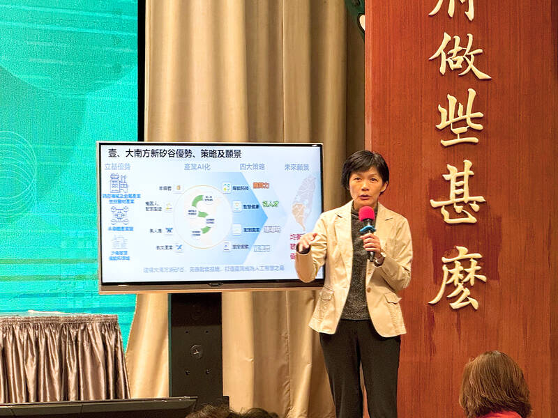 The southern technology center being established in Tainan’s Shalun Township (沙崙) is to provide an AI-fluent workforce and services such as cybersecurity to Taiwanese small and medium-sized enterprises, she said.