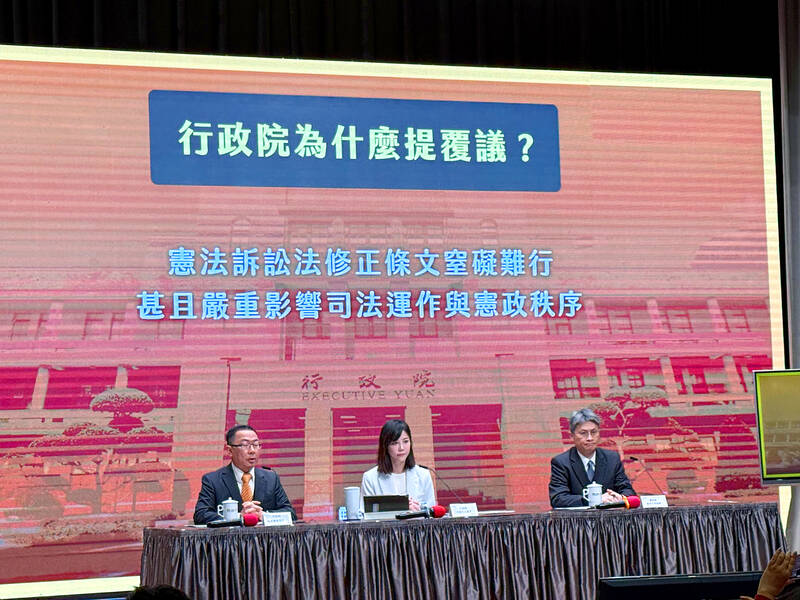 Earlier yesterday, Cabinet spokesperson Michelle Lee (李慧芝) cited Premier Cho Jung-tai (卓榮泰) as saying that the amendments would allow the legislature to override the judiciary, setting an “unreasonable threshold” that would disrupt the operations of the court.