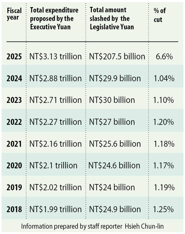 On Friday last week, the opposition-led legislature voted to cut NT$93.98 billion from the budget’s general provisions.