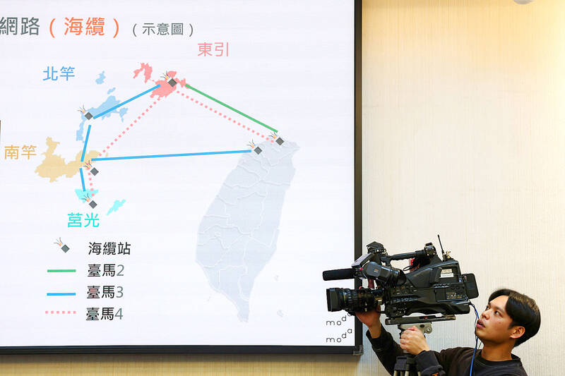 “There has been an increase in incidents of submarine cables being cut by fishing boat and freighter activity in the past two years,” he said. “As such, the Executive Yuan has listed 10 domestic submarine cables as key infrastructure, including the ones connecting Taiwan and Lienchiang. They would be maintained using government resources.”