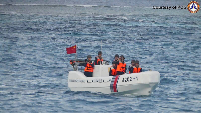 “As a result of this continuous harassment and the disregard for safety exhibited by the Chinese maritime forces,” the Philippine Coast Guard said it and the fisheries agency “regrettably suspended their survey operations and were unable to collect sand samples” from unoccupied sandbars off the Philippine-held Thitu Island (Jhongye Island, 中業島).