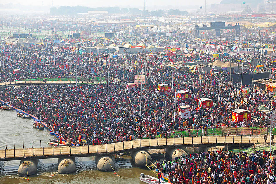 Authorities had expected a record 100 million people to throng the temporary township in Prayagraj yesterday, and had deployed additional security and medical personnel along with artificial intelligence-based technology to manage the crowd.