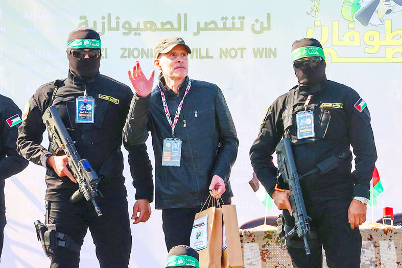 Earlier in Gaza, hostages Ofer Kalderon and Yarden Bibas were paraded on stage by Hamas fighters before being handed over to the Red Cross in the southern city of Khan Yunis. American-Israeli Keith Siegel was freed shortly thereafter in a similar ceremony at Gaza City’s port in the north.