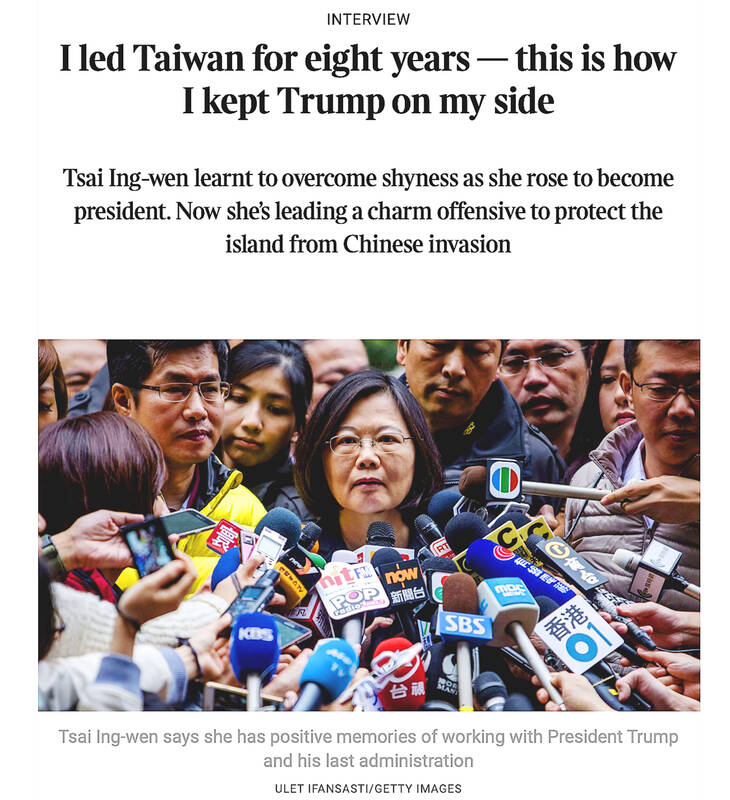 “I led Taiwan for eight years — this is how I kept Trump on my side,” Tsai said in the article, adding that the communication between the US and Taiwan’s national security teams was “strong, frequent and clear.”