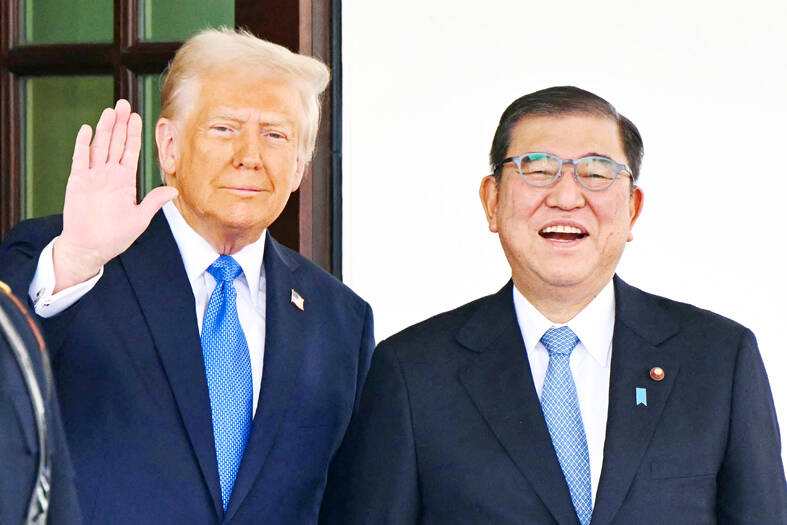 In Taipei, President William Lai (賴清德) yesterday wrote on X that Taiwan deeply appreciates Trump’s and Ishiba’s “strong support for peace across the Taiwan Strait & Taiwan’s international participation.”