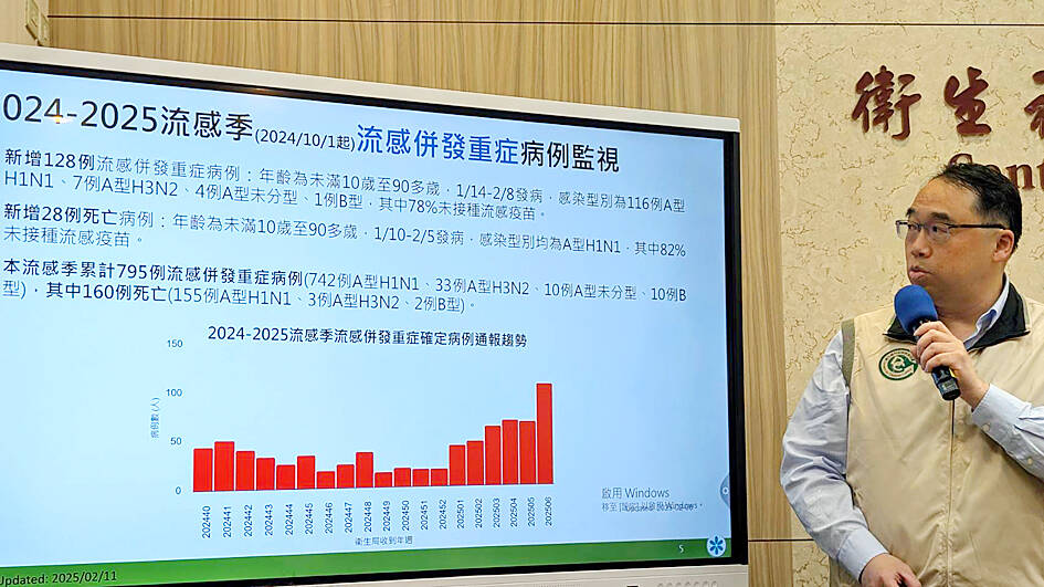 CDC physician Lin Yung-ching (林詠青) said one of the people who died last week was the youngest this flu season, a boy younger than 10 years old who had asthma and did not get vaccinated.