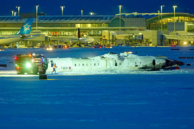 Canadian authorities held two brief news conferences, but provided no details on the crash. Video posted to social media showed the aftermath, with the Mitsubishi CRJ-900LR overturned, the fuselage seemingly intact and firefighters dousing what was left of the fire, as passengers climbed out and walked across the tarmac.