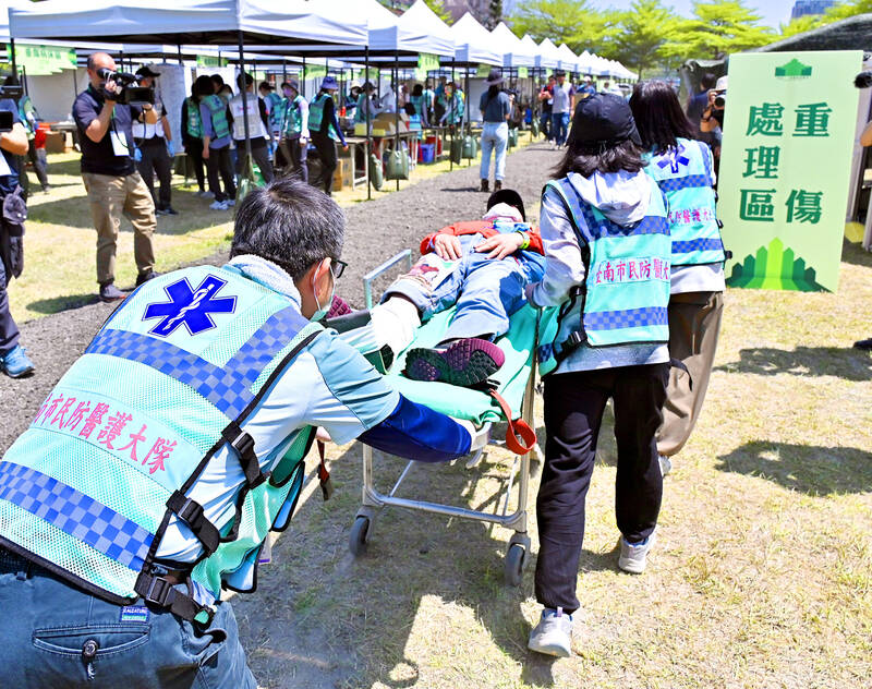 The Tainan drills simulated scenarios such as a tsunami after a massive offshore earthquake and “explosions” at a passenger port terminal, evacuating casualties to triage centers and setting up emergency response command posts.