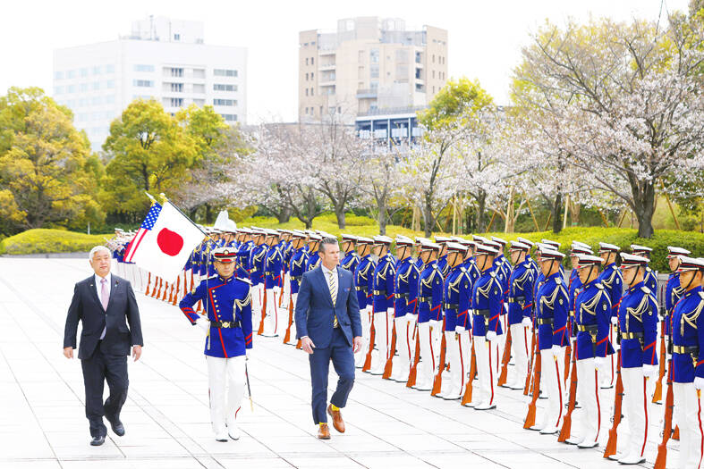 The US will ensure “robust, ready and credible deterrence” across the Taiwan Strait, US Secretary of Defense Pete Hegseth said yesterday, calling China “aggressive and coercive.”
