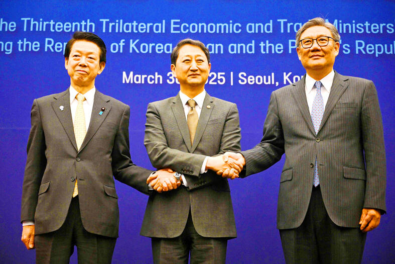 South Korea and Japan are major auto exporters, while China has also been hit hard by US tariffs. The meeting was attended by South Korean Minister of Industry, Trade and Energy Ahn Duk-geun, his Japanese counterpart Yoji Muto, and Chinese Minister of Commerce Wang Wentao (王文濤).