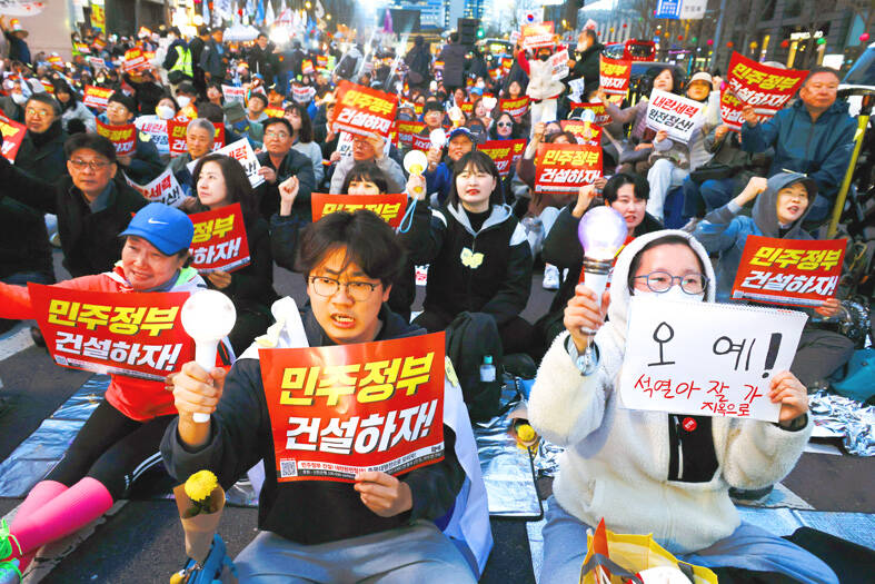 “We will absolutely not be shaken,” a protest leader said on stage. “Anyone who accepts this ruling and prepares for an early presidential election is our enemy.”