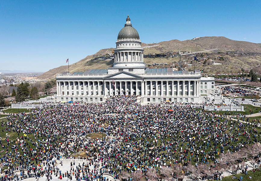 Boston Mayor Michelle Wu (吳弭), who is Taiwanese American, said she does not want her children and others to live in a world in which threats and intimidation are government tactics and values like diversity and equality are under attack.