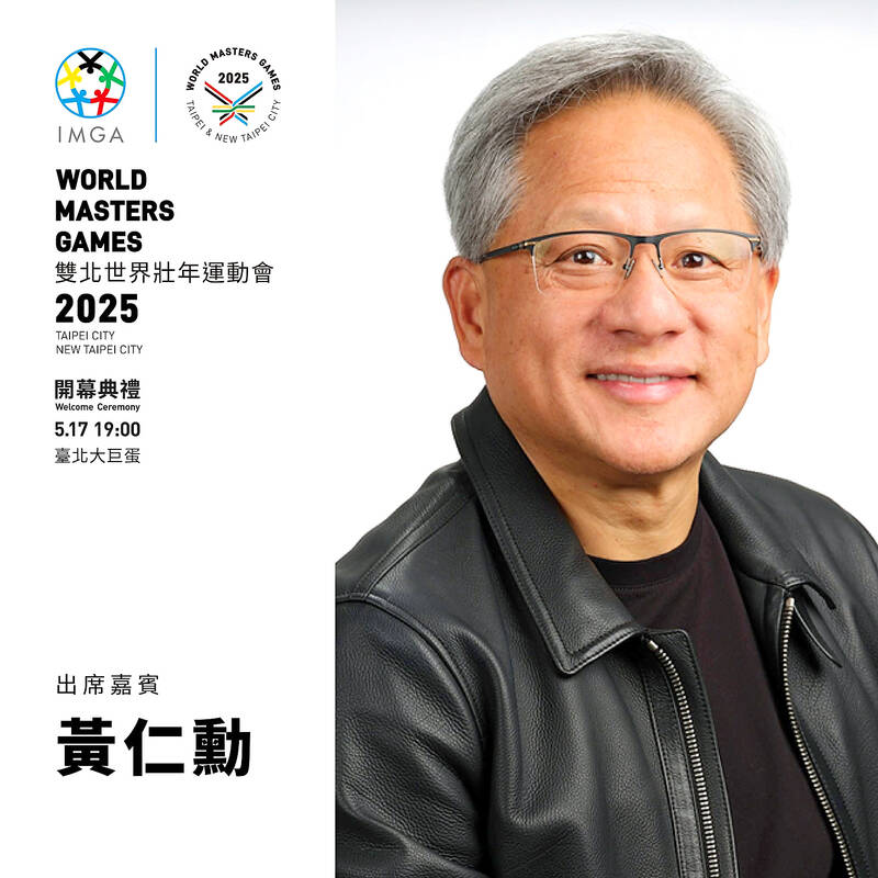 Nvidia Corp CEO Jensen Huang (黃仁勳) would be the final torchbearer at the opening ceremony of the 2025 World Masters Games in Taipei and New Taipei City today, the Games’ executive committee said yesterday.