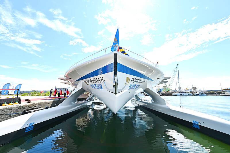 The zero emissions ship Porrima P111 was launched yesterday in Kaohsiung, showcasing the nation’s advancement in green technology, city Mayor Chen Chi-mai (陳其邁) said.