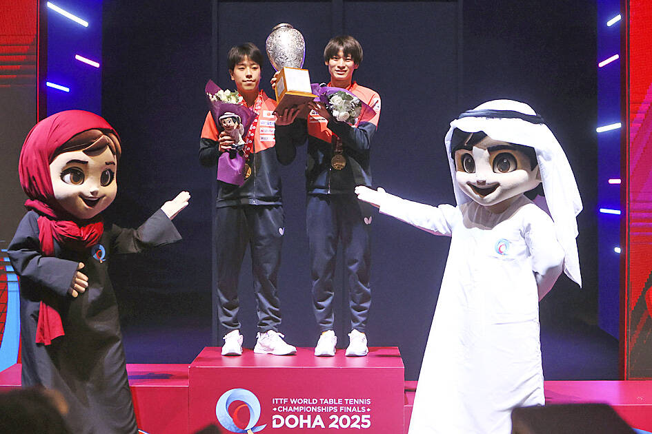 Taiwanese table tennis players Lin Yun-ju (林昀儒) and Kao Cheng-jui (高承睿) yesterday secured a silver medal in the men’s doubles at the ITTF World Table Tennis Championships in Doha, losing to their Japanese opponents in the final.