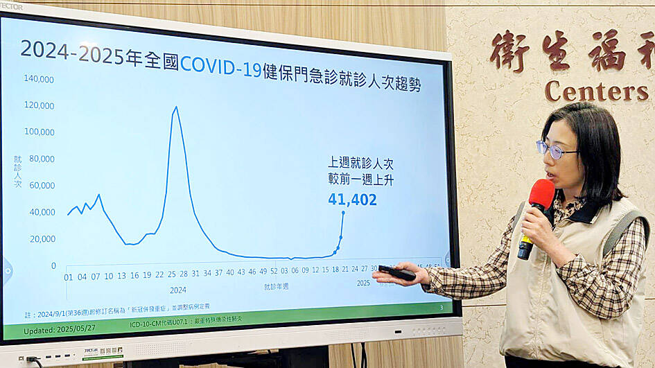 CDC Epidemic Intelligence Center Deputy Director Lee Chia-lin (李佳琳) said weekly hospital visits for COVID-19 have been increasing for seven consecutive weeks, and 102 severe COVID-19 cases and 19 deaths were confirmed last week, both the highest weekly numbers this year.