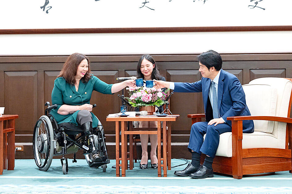 A delegation led by US Senator Tammy Duckworth met with President William Lai (賴清德) at the Presidential Office yesterday.