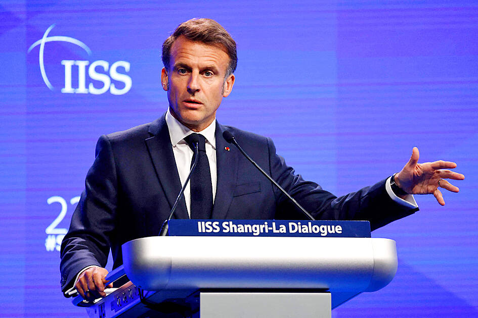 Following a meeting yesterday with Singaporean Prime Minister Lawrence Wong (黃循財), Macron told reporters there was room in the region for more than just the two superpowers.