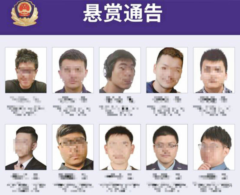 The bureau placed a bounty of 10,000 yuan (US$1,392) on each of the 20 people named in the warrant, which also listed their national identification card numbers.