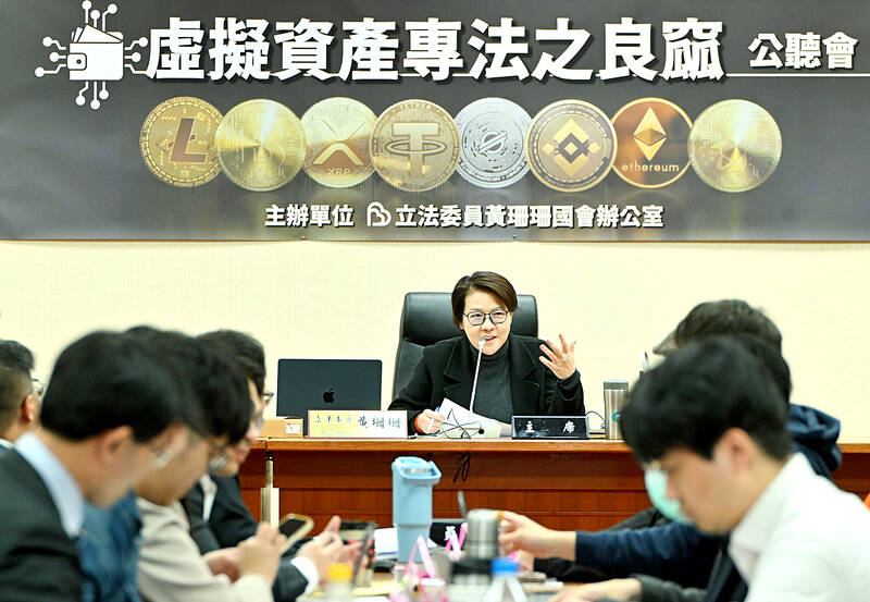 Yesterday’s meeting at the Legislative Yuan was open to the public as part of a policy to ensure that businesses have opportunities to study the government’s policy and advise officials on matters concerning virtual assets, Democratic Progressive Party Legislator Lai Hui-yuan (賴惠員) said.