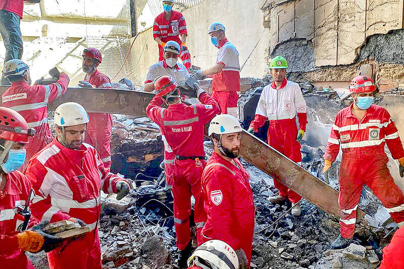 Downtown Tehran appeared to be emptying out early yesterday, with many shops closed. On the roads out of Tehran to the west, traffic stood bumper to bumper. Many appeared to be heading to the Caspian Sea area. Long lines also could be seen at gas stations in Tehran, with printed placards and boards calling for a “severe” response to Israel visible across the city.