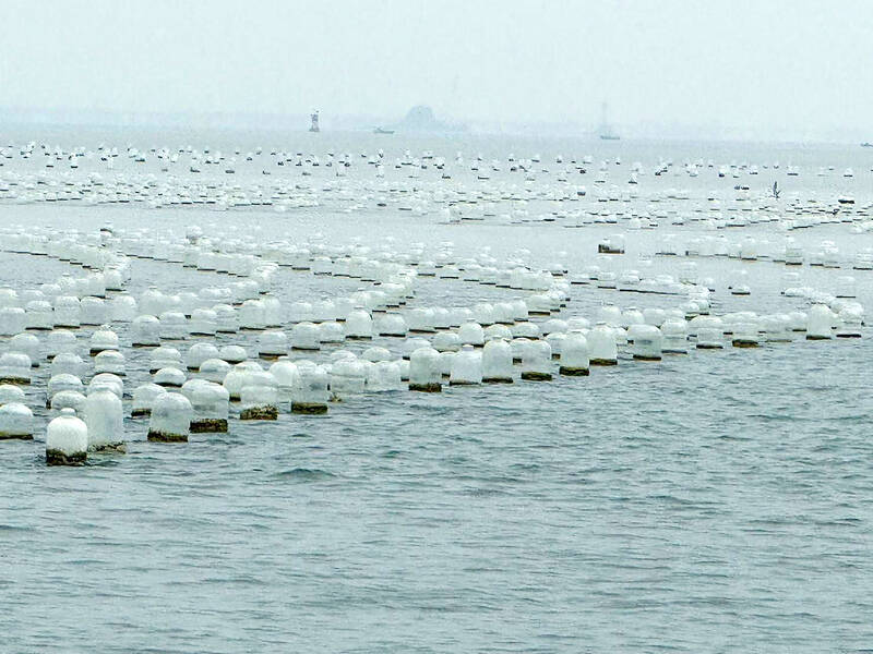 “We will work with the Kinmen County Government to remove the racks, because the interests of Kinmen County residents who operate oyster farms legally are also at stake,” Lin said.