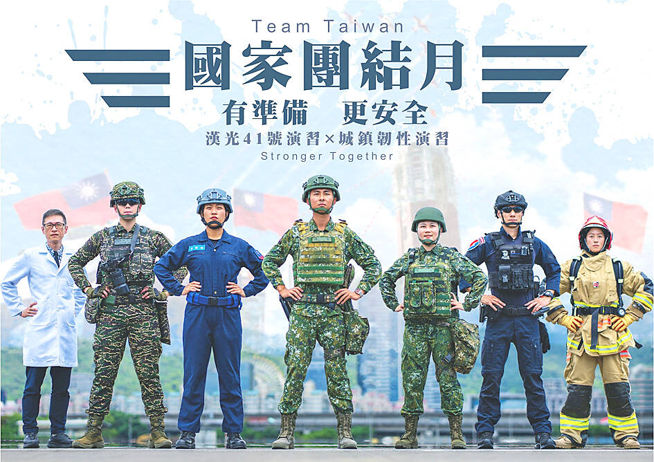 With the slogan “Team Taiwan, Stronger Together,” the core principle of “national unity month” is that defense is not the sole responsibility of the military, but a duty shared by all citizens, the official said.
