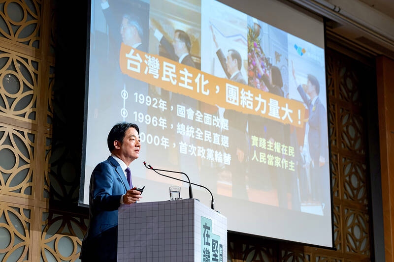 Lai also restated former president Tsai Ing-wen’s (蔡英文) “four commitments,” which refer to Taiwan’s commitment to a democratic constitutional system, not being subordinate to China, protecting national sovereignty and the right of Taiwanese alone to determine their future.