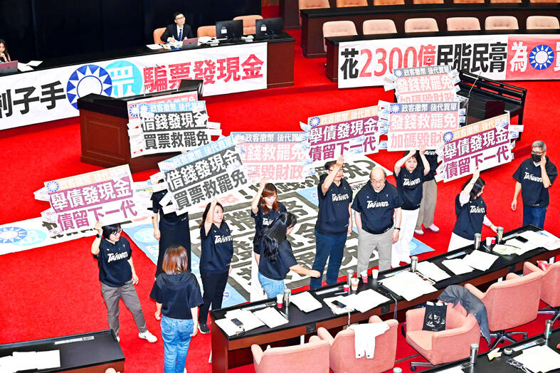 The opposition parties did not submit a joint proposal for amendments to the bill, as the KMT and the Taiwan People’s Party (TPP) failed to reach a consensus on the value of the cash handouts.