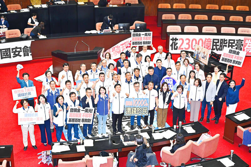 The KMT was originally against the NT$150 billion budget for whole-of-society defense resilience and the NT$100 billion subsidy for Taipower. It had proposed its own version of the special budget bill, which included NT$10,000 cash handouts.