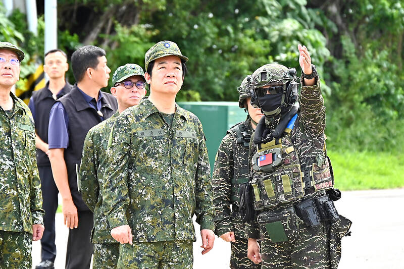 In Kaohsiung’s Zuoying District (左營), President William Lai (賴清德) observed a mine-laying exercise and provided personnel with extra meal money to encourage them and show appreciation for their work.