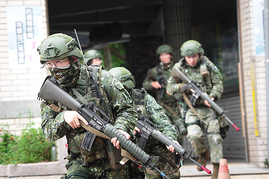 The ongoing Han Kuang military exercises entered their sixth day yesterday, simulating repelling enemy landings in Penghu County, setting up fortifications in Tainan, laying mines in waters in Kaohsiung and conducting urban combat drills in Taipei.