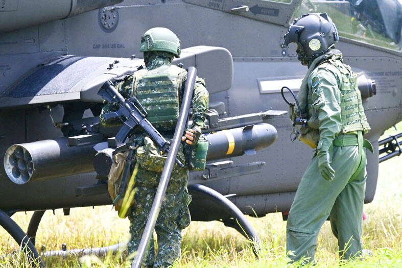 The army’s 601 and 602 Aviation Brigades, in Taichung’s Dongshih District (東勢) and New Taipei City’s Shulin District (樹林) respectively, carried out hot refueling drills.