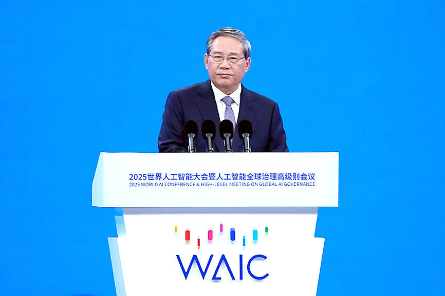 Chinese Premier Li Qiang (李強) yesterday warned that artificial intelligence (AI) development must be weighed against the security risks, saying global consensus was urgently needed even as the tech race between Beijing and Washington shows no sign of abating.